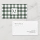 Easily add your monogram initial over a chic green and white plaid pattern. On the professional business card back, add your name, and customise the job title/speciality/company, website, and contact information. Perfect for a consultant or other professions.