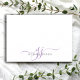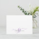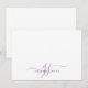 A chic modern stylish lavender script initials monogram on note cards, with a dramatic script initial with swashes and your full name in a modern serif type. Simple elegance. Be sure to select your preferred size for the card before purchasing.