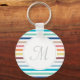 Chic Monogram Pastel Rainbow Horizontal Stripes Key Ring