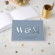 Chic dusty blue wedding guest book featuring your choice of real gold, silver or rose gold foil, your monogram initials in large classic serif typography, your names and your wedding date. Personalise with a photo on the back and a title on the spine.