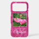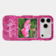 Give mum, grandma, girl friend, or special friend a beautiful custom pink girly glitter phone case with a cherished photo that she can carry wherever the phone goes.The case now features a place holder photo of a green anole lizard perched on the petal of a beautiful pink tropical Hibiscus flower surrounded by greenery. Pink and green are prominent colours in nature. Replace the placeholder photo with her favourite photograph like one from Instagram or if you prefer the floral placeholder photograph keep it. Choices rock. Fill in the template name and initial, remove the text or click customise to select a font style, size, and colour you prefer.