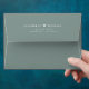 Chic sage green envelope for your wedding invitations, save the dates, engagement announcements, couples shower, thank you cards and other correspondence. Personalise with your monogram names joined together by a heart and your return address in simple modern white typography.