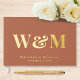 This chic and elegant terracotta wedding guest book features real gold foil, your monogram initials in large classic serif typography, your names and your wedding date, and a title on the spine.