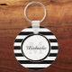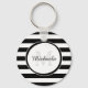 A chic black and white large stripes basic keychain. Personalise this dressy pattern by adding your name and monogrammed initial. This modish monogram design is part of the Black Trinkets Summer Colour Collection.