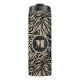 A stylish thermal tumbler features a pattern of beige and black wild animal stripes print accented with your chic initial monogram. Create for yourself or give as a gift. MATCHING items in our collection.