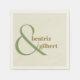 Add a personalised touch to your wedding cocktail hour with these modern monogram napkins with your names and an elegant ampersand in moss green and olive green on a cream background. The stylish typography provides a signature look for your big day.