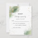 This unique wedding response card is chic and elegant, featuring artistic and modern moss green watercolor splashes with gold botanicals and gold dust splatters. All typography in charcoal is customisable for you to personalise your response card.