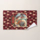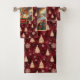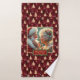 Chic Mr. and Mrs. Claus Gold Trees Red Bath Towel
