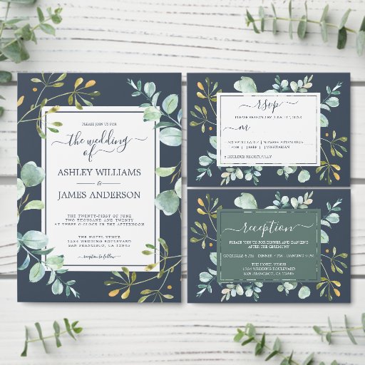 Green Eucalyptus Navy Blue Botanical Wedding SuiteDesigned by Jolanda D