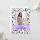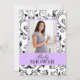 Super chic and trendy mum-to-be photo baby shower invitations make it easy to throw a fabulous baby shower. Design features a modern black and white damask background with purple accents and custom photo template on quality 5 x 7 in. cardstock. Don't struggle writing out dozens of department store shower invitations, use the custom personalised invites and make a great impression. Create wonderful scrapbook memento's and keepsakes. Each baby shower invitation comes with an envelope. © 2012 All Rights Reserved