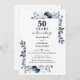 This elegant, navy blue 50th golden wedding anniversary invitation can be personalised with your information in modern typography. Designed by Thisisnotme©