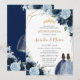 Chic Navy Baby Blue Floral Girls Twins Quinceañera Invitation
