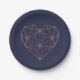 Chic Navy Blue and Rose Gold Foil Geometric Heart Paper Plate