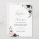 Chic Navy Blue & Blush Pink Floral Wedding Photo Invitation