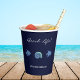 Add a touch of coastal charm to your gatherings with this personalised Beach House Family Name Paper Cup. Featuring a beautiful design of delicate shells and fish against an elegant navy blue background, this cup perfectly captures the serene vibes of the ocean, sea, and beach. The family name is showcased, and a chic white script calligraphy font gives a sophisticated and personalised flair to your beach house events. Whether for a casual summer party or a coastal-themed gathering, this stylish paper cup complements your decor and will add a unique touch.