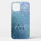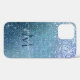"Chic Navy Blue, Glitter Sparkle Girly Shimmering and Luminous design with Monogram and Script Name iPhone 12 Case." Graphically designed by internationally licensed artist, Audrey Jeanne Roberts, copyright.