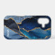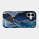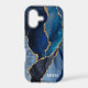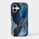 Protect your phone in style with this chic design featuring your monogram and colourful shades of blue agate with metallic gold foil veins.