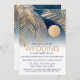 Chic Navy Blue Gold White Palm Tree Leaf Wedding Invitation