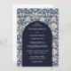 Chic navy blue ivory floral Art Nouveau Morris Invitation