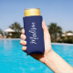 Chic Navy Blue Name Custom Handwritten Script Seltzer Can Cooler