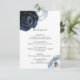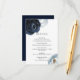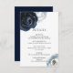 Chic Wedding Details Card featuring painted watercolor peonies in navy blue and white.