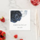 Chic Wedding Paper Napkin featuring painted watercolor peonies in navy blue and white.
