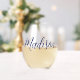 A chic navy blue personalised name wine glass for a girl or guy who loves simple, handwritten gifts. Beautiful cursive script spelling out your name in modern typography. A trendy monogram present.