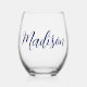 Chic Navy Blue Personalised Name Stemless Wine Glass