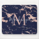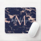 Chic Navy Blue Rose Gold Foil Marble Monogram Mouse Pad