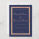 Chic navy blue rose gold frame calligraphy wedding invitation