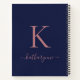 Chic Navy Blue Rose Gold Pink Monogram Name Notebook