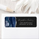 The left-hand edge of this elegant modern wedding invitation return address label features a navy blue watercolor agate border trimmed with faux silver glitter. The customisable text combines light silver grey handwriting and copperplate fonts on a dark charcoal grey background.