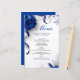 A luxurious layout featuring vibrant navy blue flowers, satin ribbons, and delicate white floral accents. This elegant and ornate design is ideal for formal weddings with a classic or glamourous aesthetic.