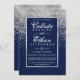 Chic Navy Blue Silver Glitter Confetti Wedding Invitation