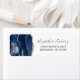 The left-hand edge of this elegant modern wedding invitation return address label features a navy blue watercolor agate border trimmed with faux silver glitter. The customisable text combines charcoal grey handwriting and copperplate fonts on a white background.