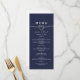 Our navy blue wedding menu exudes simplicity and elegance with a minimalist design. The chic look is enhanced by a romantic silver rope heart and modern calligraphy script, making it a sophisticated choice for your special day.