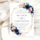 Chic Navy Rose Gold Blush Floral Wedding Geometric Invitation