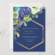 Elegant Chic Navy & White Watercolor Floral Gold Geometric Frame Invitation.