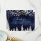 Thank your guest for coming to your winter wonderland wedding with this silver glitter sparkles snow and snowflakes thank you card, with silver shiny pine trees forest on an elegant winter navy blue watercolor background.