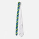 A chic Necktie, with a diagonally striped pattern in bright blues and neon green and black. Part of the Posh & Painterly 'Blue Moons' collection; from a handpainted paper collage design by Judy Adamson.