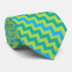 A chic Necktie, with a diagonal zigzag pattern in turquoise, neon green and emerald chevrons. Part of the Posh & Painterly 'Blue Moons' collection; from a handpainted paper collage design by Judy Adamson.