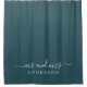 Chic dark emerald monogram shower curtain with the text Mr and Mrs in white elegant script. The colour deep emerald is used for this stylish design you can customise with your married name. Perfect luxury gift for the newlywed couple. Exclusively designed for you by Happy Dolphin Studio.
