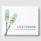 Minimal and Elegant this nautical themed guest book features a pair of crossed nautical oars in subtle palette of light green, dark and light grey with a touch of gold.