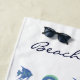 Chic Ocean Blue White Shells and Fish Name Beach Towel
