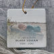 This chic our angel in heaven baby photo memorial ceramic ornament is the perfect modern memorial Christmas tree decoration. The simple design features classic minimalist black typography with a rustic boho feel. This keepsake ornament reads "our angel in heaven". Personalize your double-sided ornament with a photo of your baby, your baby's name and the year.