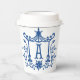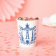 These chic pagoda monogram cups are perfect to use for entertaining and make an excellent hostess gift. The pagoda design and the monogram are in a navy blue on white.