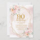 Chic Pale Pink Gold Glitter Flowers 90th Invite