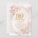 Chic Pale Pink Gold Glitter Flowers 90th Invites