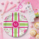 LOVELY 561 HOT PINK AND 60 GREEN TILED FLORAL AND STRIPES ON WHITE WITH HOT PINK TAG AND WHITE MONOGRAM. PERFECT FOR A SUMMERTIME OCCASSION INDOORS OR OUT! MIX AND MATCH WITH COORDINATED NAPKINS, PAPER CUPS, AND HOME ACCESSORIES INCLUDING THROWS, INDOOR AND OUTDOOR PILLOWS AND COASTERS IN SOLIDS, MONOGRAMED, STRIPES AND FLORALS. ALSO SEE "CHIC HOME AND GARDEN COLLECTION #1 561 HOT PINK" FOR ALL ITEMS AVAILABLE! SO PRETTY.