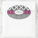 Chic Paris Pink and Black Damask and Stripes Oval Sticker